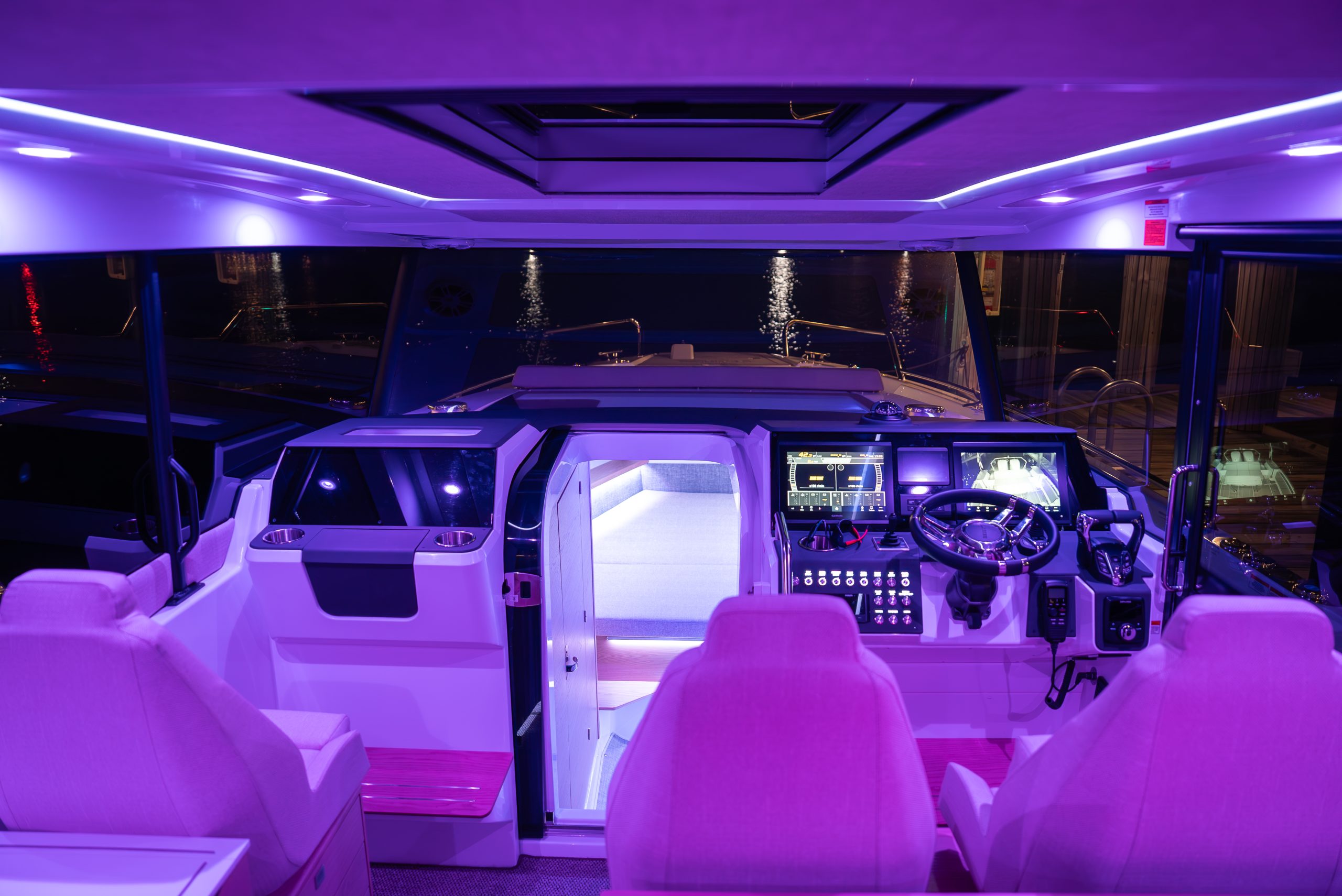 Crafted and assembled in Finland, the Quarken 35 Cabin epitomizes a premium, sporty boating experience. Its clean, modern, and sophisticated Nordic design, coupled with a nimble, responsive, and fuel-efficient twin-stepped hull, redefines stylish navigation. The cabin's design prioritizes panoramic views and visibility, offering easy access and ample space for a functional galley and dining area. A glass sky window bathes the interior in natural light, providing guests with stunning views. Powered by twin Yamaha F300 outboard engines, the 35 Cabin meets all performance expectations, ensuring a dynamic and exhilarating drive. Its reliability is unquestionable, even in rough and choppy sea conditions. The helm's ultra-modern design is driver- focused, offering optimal seating comfort. The aft deck's customization options include various modular solutions, each designed with a specific purpose. These modules, ranging from an open layout to one or two aft benches or a wet bar unit, combine to create multiple relaxing spaces. The addition of manually opening side terraces transforms the deck into a social hub for family and guests. By opening the large glass rear window and door, the cabin and aft deck merge into an expansive social area. Additionally, the large sundeck at the bow provides extra seating and is easily accessible from the aft, enhancing the boat's overall sociability and comfort.